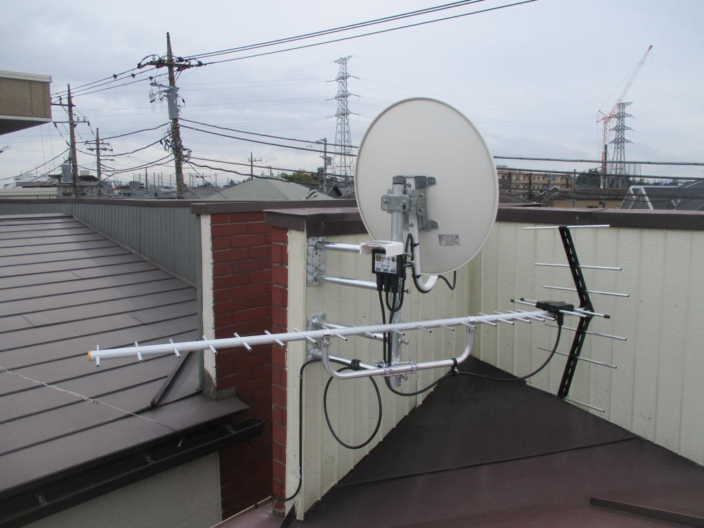 - 作業内容:アンテナ建て替え工事、ブースター工事、アンテナ配線引き直し、屋外分配器交換、アンテナ撤去・処分など