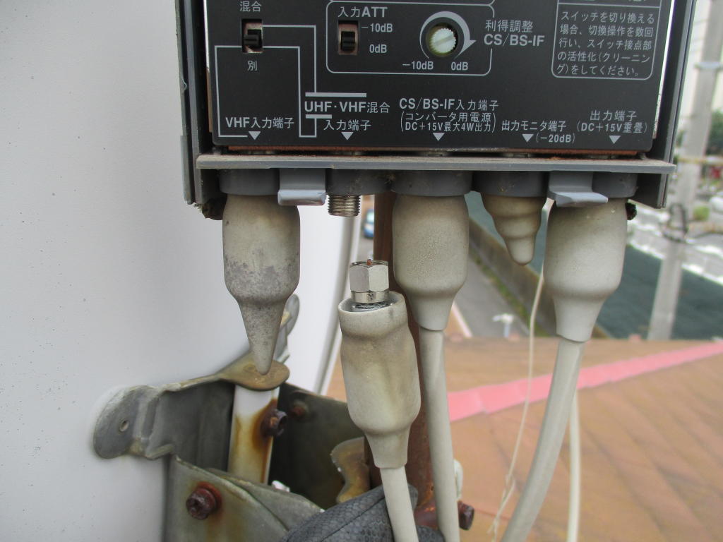 - 現状:地デジ+BS混合工事(4mの高さで取り付け)、BS混合ブースター工事