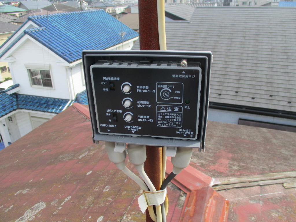 - アンテナ工事でブースター工事が追加される事が相模原市近郊ではスタンダード工事(各部屋に配線されると電波強度が弱くなり電波を強くする事が必要)ですが、24時間通電しているブースター本体は、家電品の様に壊れる事があります
