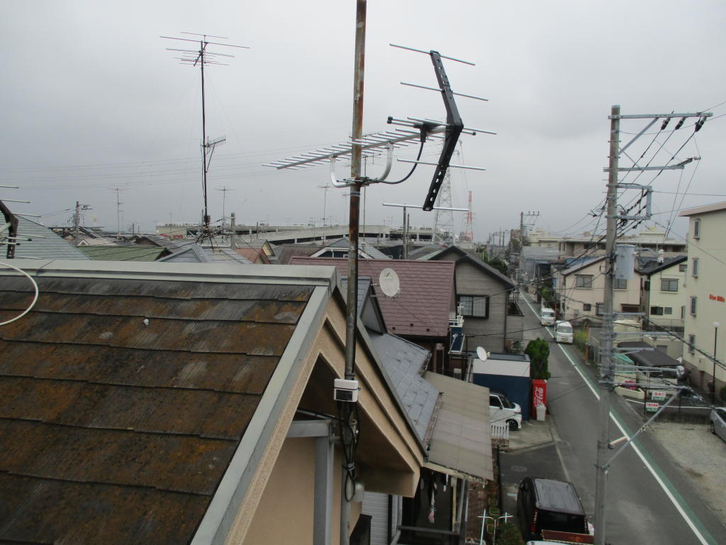 - 台風シーズン前の少し風が吹いている日に、ご自身で路上からアンテナを確認して、茶色に見える(サビている)、揺れている(アンテナ支線が緩んでいる)などをチェックして見て下さい(アンテナ建て替え工事はご自身のご判断です)